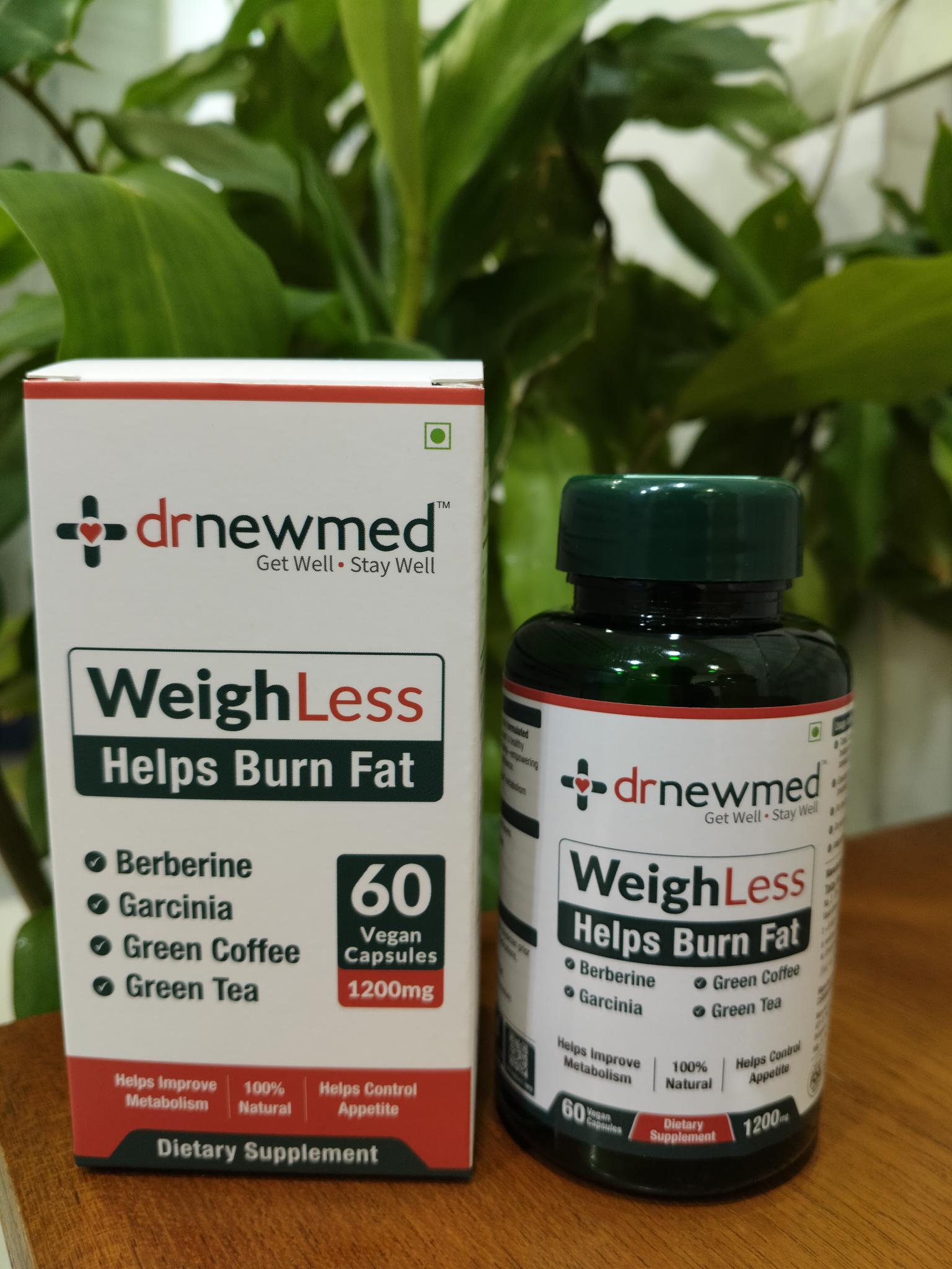 WeighLess is a scientifically formulated weight-management supplement exclusively offered by DrNewmed India. It combines nine time-tested herbs designed to support metabolism, fat burning, appetite control, and digestive health—helping you manage weight the natural way.